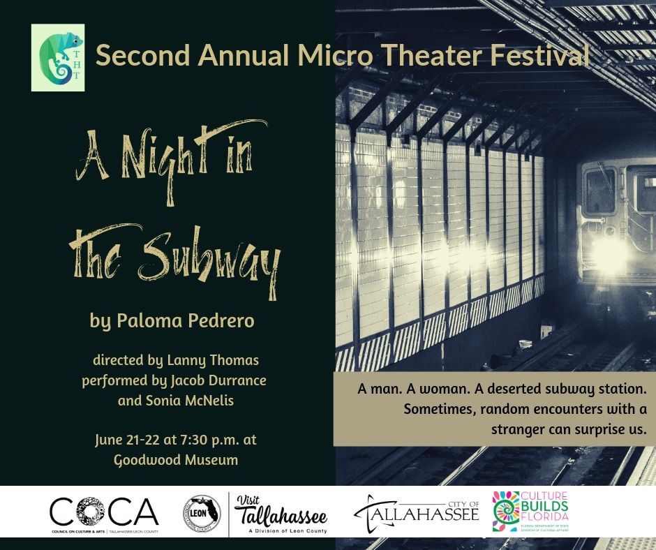A Night in the subway by Paloma Pedrero: Late at night, in a deserted subway station, a man and woman meet and have a conversation. “Sometimes, random encounters with a stranger can surprise us, and we learn as much about them as we do about ourselves.” Directed by Lanny Thomas, and performed by Sonia McNelis and Jacob Durrance.