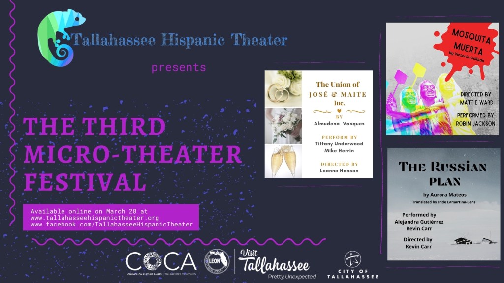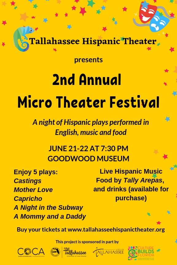 Tallahassee Hispanic Theater embraced the concept of Micro Theater, started in 2009 in Spain, presenting a group of short plays performed in the same space: the Carriage House at Goodwood Museum. Micro-theater is a form of theater very popular these days in Spain, Latin America and places like Miami and New York. It brings short stage performances up close to the audience in unusual venues.